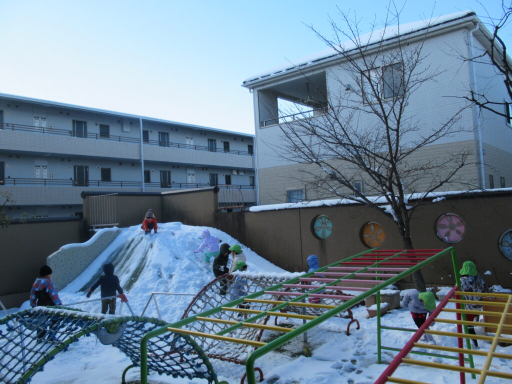 雪が降りました❕ 2026.01.30 日常のようす 1/23(金)雪あそびを楽しみました。今年一番の積雪となり、園庭一面雪景色!こどもたちは、大喜び!雪を投げてみたり、雪ですべったり、雪だるまを作ったり☺寒さに負けず、冬ならではの雪あそびを笑顔いっぱい、思いきり楽しみました。 毎月職員会議を行っています😉 前の記事